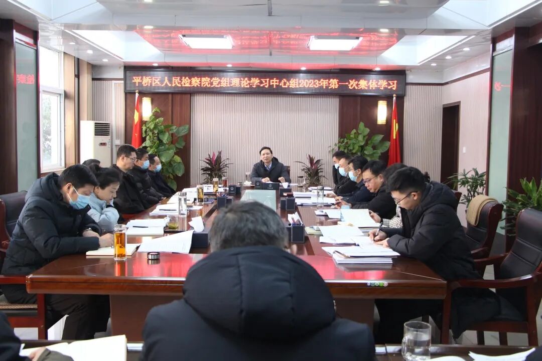 1月16日,平桥区人民检察院举行党组理论学习中心组2023年第一次集体学习,认真学习习近平总书记在党的二十届一中全会上的重要讲话、在二十届中央纪委二次全会上的重要讲话、对政法工作作出的重要指示精神及中央政法工作会议、中央经济工作会议精神、党章等内容。区检察院党组书记、检察长袁永明主持会议并讲话,中心组其他成员参加会议。